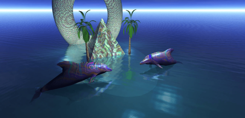 Moins de 10 ans après la sortie de Super Mario Sunshine, la vague seapunk s’apprêtait à déferler sur l’Internet créatif et bloggeur. Sorte de célébration hallucinée des dauphins et de l’eau en 3D, on retrouve aisément dans toute création seapunk les traces de Miami Vice, de Waterworld, de GTA ou encore, évidemment, d’Ecco The Dolphin. Les bruits de mouette qui ponctuent la musique associée sont ceux des jeux vidéo, puisque c’est la mer digitale, générée et sublimée par ordinateur, qui est louée. En ressort une impression d’ironie dans le deuil, une nostalgie reconstruite de la dernière vingtaine du XXe siècle, qui surgit presque immédiatement après la prise de conscience de la disparition. L’esthétique Surf Crush, qui poursuit péniblement la décennie après 2002 au travers de séries adolescentes comme H2O ou Laguna Beach, n’aura pas su entretenir la flamme pour le mythe de la plage tropicale : c’est au contraire un éloge de la jeunesse blanche aisée, d’un Californian way-of-life aseptisé et beaucoup trop familier pour donner goût à l’ailleurs édénique. Le seapunk vient clore cette mascarade, ce détournement américano-centré, pour affirmer que le tropical de nos jeux d’enfant est bel et bien mort, et définitivement virtuel (à l’état de possible, non réalisé).
