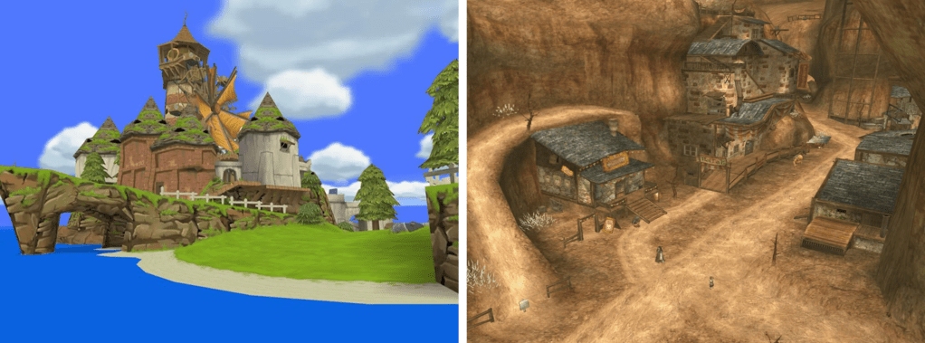 Un même écosystème me séduit : la plage tropicale, avec ses palmiers et ses dauphins, son petit village, ses nuages géants et sa mosaïque de lumière à la surface de l’eau. Mélange de prouesse technologique et de poésie discrète, la tropical map est devenue un marqueur du dépaysement par l’écran – pour moi, pour beaucoup. Subreddits, articles et reels se sont déjà penchés sur ce vécu partagé pour en chercher l’origine : pourquoi autant de jeux des années 2000 ont adopté, et diffusé, cette esthétique ? Pourquoi voit-on moins de douceur tropicale dans les jeux vidéo d’aujourd’hui ? Et comment retrouver ce sentiment d’ailleurs si doux ?