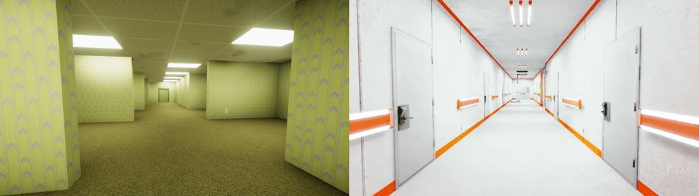 En ce sens, Mirror’s Edge peut être compris comme un voyage dans les Backrooms, enchaînement infini de salles vides abandonnées, parallèles à notre réalité. Né comme creepypasta sur 4chan, l’espace imaginaire des Backrooms est sans doute le meilleur exemple du sentiment omineux rattaché aux espaces liminaux : on songe à ce qui a rendu le lieu inhabitable, ou s’il ne serait pas encore occupé par une entité inquiétante. Dans le jeu, Faith en quelque sorte no-clip (peut franchir les barrières d’ordinaire impénétrables). Elle se faufile à travers les obstacles installés par un pouvoir invisible. Elle ne fait que courir, traverser toujours en hâte des couloirs et des lieux qui par la force des choses deviennent toujours couloirs. Elle seule voit les espaces cachés, parfois moins contrôlés, en attente d’être habités – mais où l’on ne peut s’arrêter sans s’exposer.