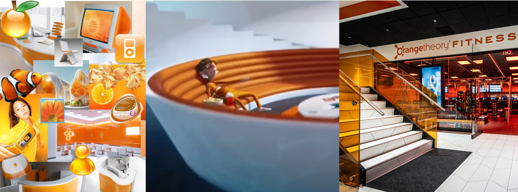 L’association du blanc, du rouge et de l’orange dans un environnement futuriste ensoleillé porte un nom : DORFic (pour Daylight, Orange, Red, Futuristic graphic). Le terme, forgé en 2023 sur Aesthetics Wiki, désigne ce qui peut être considéré comme un sous-genre du Frutiger Aero, moins naturel (peu d’eau ou de végétation sauvage) et plus informatique (motifs technologiques et éclairage néon). Esthétique caractéristique de la fin des années 2000, le DORFic incarne un enthousiasme débordant pour l’accélération du progrès informatique, qui s’assume comme tel, quitte à surjouer le futurisme façon Space Age. Un design orangé servait à signaler, il y a moins de 20 ans, que l’avenir était déjà là : avenir robotisé chez Vector dans Moi, Moche et Méchant (2010) ; connecté sur le Xbox Live (jusqu’en 2013) ; productif grâce aux packs Office (2007-2010) ; et même plus sain, dans les salles de fitness Orangetheory (fondé en 2010).