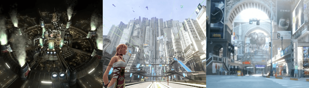 Jeux vidéo, films et séries déversent depuis une vingtaine d’années des images dystopiques d’une ville qui ne nous est plus radicalement étrangère comme la science-fiction du XXe siècle. L’évolution de la franchise Final Fantasy en est un bon exemple : si le paysage-type de l’heroic fantasy reste prédominant, la ville toxique et surveillée revient de plus en plus fréquemment depuis FFVII. Cet archétype, avec bidonville souterrain très Metropolis dans le septième opus (1997), s’est mué en une glorieuse mégapole hyperdense d’esprit chinois (FFXIII, 2009) pour devenir finalement une capitale crispée étrangement familière (FFXV, 2016).