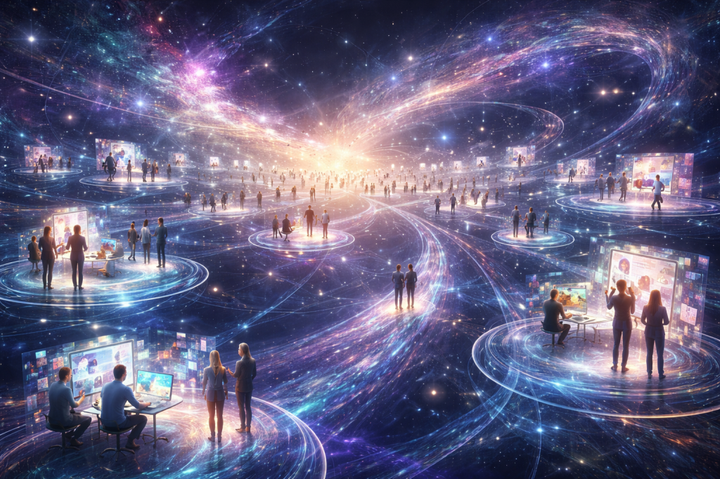 Nous pouvons réaffirmer que le post-humain ne va pas arriver de sitôt. En revanche, la manière de raconter ces innovations IA, en mettant l’accent sur l’inconvénient de la spatialité (coûteuse, fatigante, chronophage, faillible) et le bénéfice du pocket-size, marque une rupture avec l’idée d’un espace ouvert et commun propre au Web2. L’exploration innocente et la rencontre impromptue avec quelqu’un à l’autre bout du monde ne font plus le cœur du virtuel : place à l’auto-simulation d’un espace fermé, défini par l’univocité de l’information et non plus par la découverte, l’ouverture, l’extension.